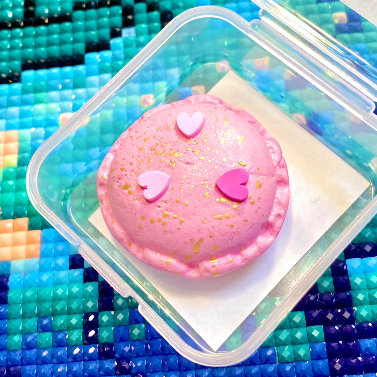 Heart Sprinkles Macaron. Pink. Wt. 10-11g. Scent: Strawberry.